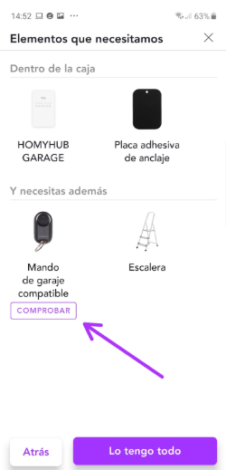 En caso de duda, siempre puedes intentar instalarlo y nuestro asistente de instalación en la App te dirá si es compatible y si el dispositivo HOMYHUB GARAGE lo ha podido copiar o no.
