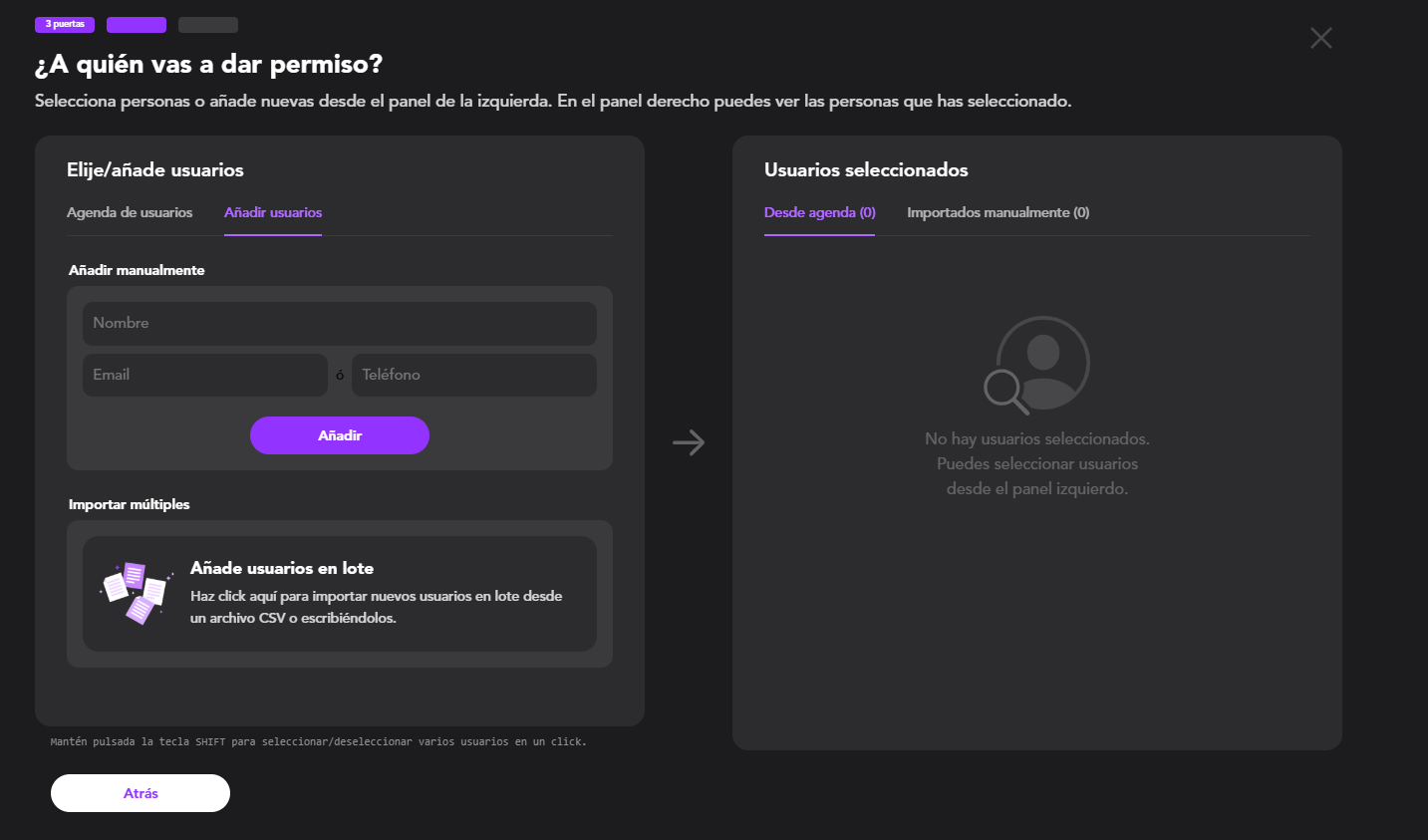 💡 En “Añadir usuarios en lote”, puedes descargar nuestra plantilla de importación.