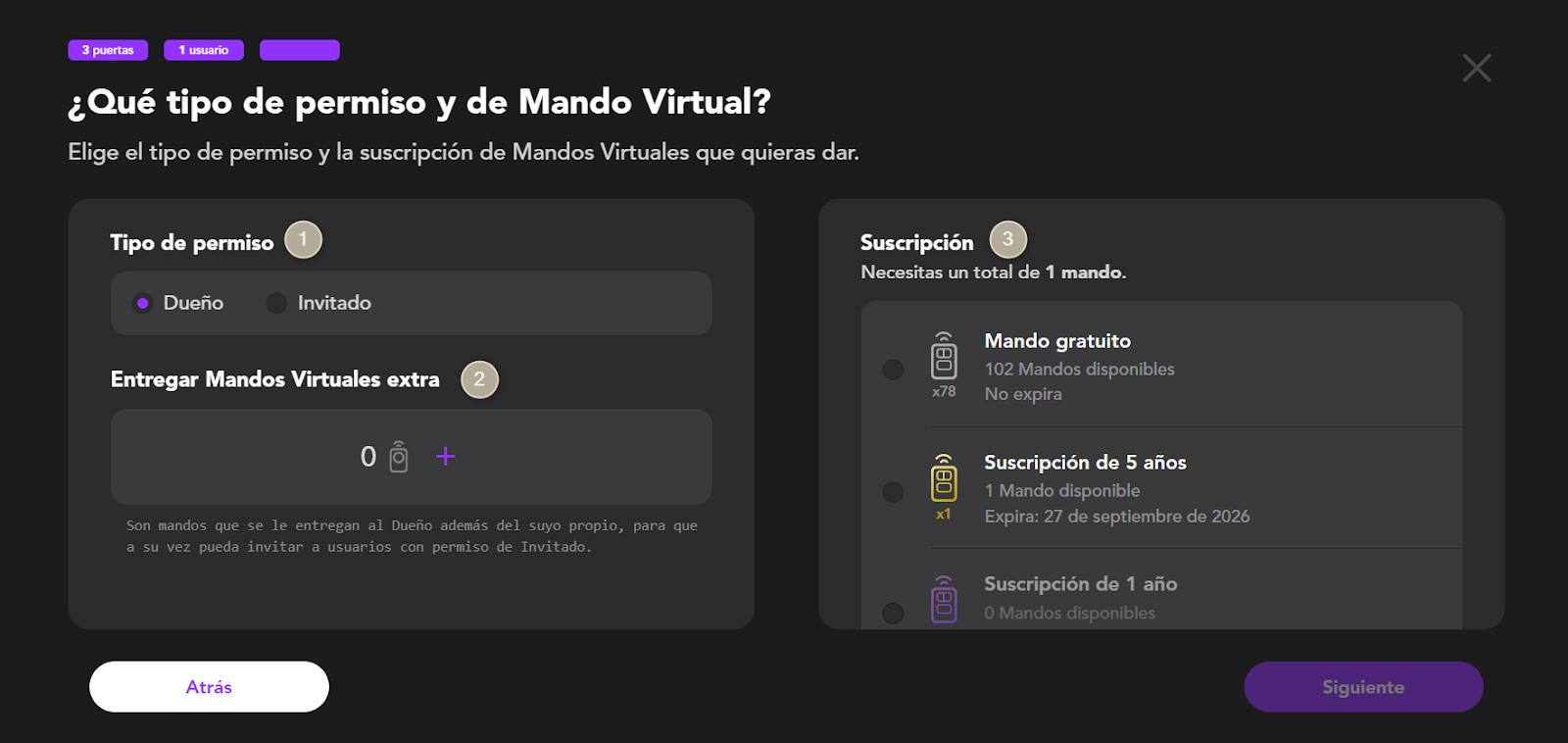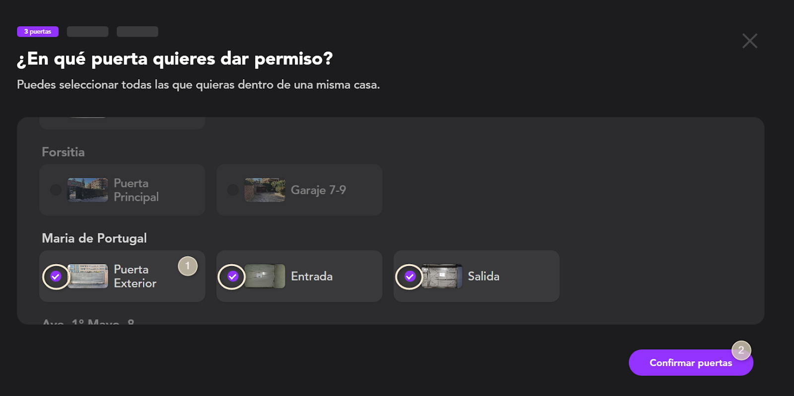 A continuación, selecciona las puertas a las que quieres dar acceso y confirma: