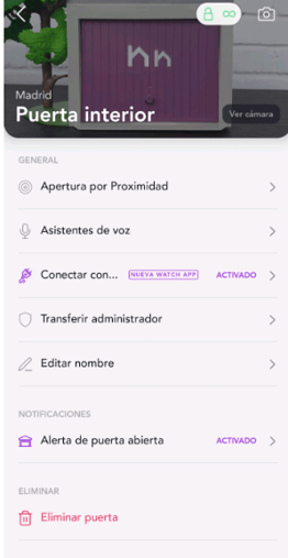 Desde la pantalla de ajustes, podrás ver el menú para activar tanto la "Apertura por proximidad", como tantas otras funcionalidades que te ayudarán a liberar todo el potencial de tu garaje, haciéndolo mucho más cómodo y seguro: Como apertura por voz con tu asistente favorito, conectarlo con cámaras de videovigilancia para monitorizarlo 24/7 incluso de forma automática, CarPlay y Android Auto... ¡Entre muchas cosas más!