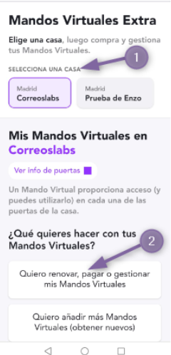 En la siguiente pantalla, primero selecciona tu casa y luego pulsa en "Quiero renovar, pagar o gestionar mis Mandos Virtuales":
