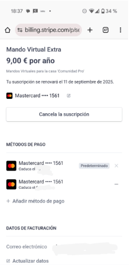 Añade tu método de pago en todas las suscripciones que desees renovar.