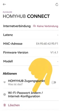 1- Der HOMYHUB CONNECT ist offline gegangen. Gründe: