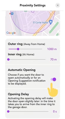 First, confirm that you have Automatic Opening enabled in your app. To do this, look at the top of the Proximity Opening activation screen. There, you'll find the "Switch" to select one type (Suggested Opening or Automatic Opening).