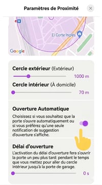 Vérifiez d'abord que l'option Ouverture automatique est activée dans votre application. Pour cela, sur l'écran d'activation de l'ouverture de proximité, regardez en haut. Vous y trouverez le bouton permettant de choisir entre Suggestion d'ouverture et Ouverture automatique.