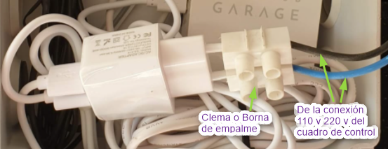 Es ist jedoch möglich (durch einen professionellen Elektriker), die 110-V- oder 220-V-Stromversorgung vom selben Bedienfeld zu nehmen und eine Verbindung herzustellen, um (mit einem Spleiß terminal) ein mobiles 5-V-Ladegerät oder Netzteil mit einem USB-Anschluss anzuschließen und von dort aus die HOMYHUB GARAGE mit einem beliebigen USB-zu-Micro-USB-Kabel in seinem seitlichen Anschluss zu versorgen.