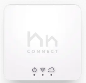 - Green light, left:Turns on when the HOMYHUB CONNECT is plugged into the power outlet and receiving power.